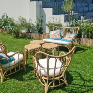 Table basse en rotin. Son allure naturelle et son design travaillé en font un mobilier élégant et propice à l’évasion.